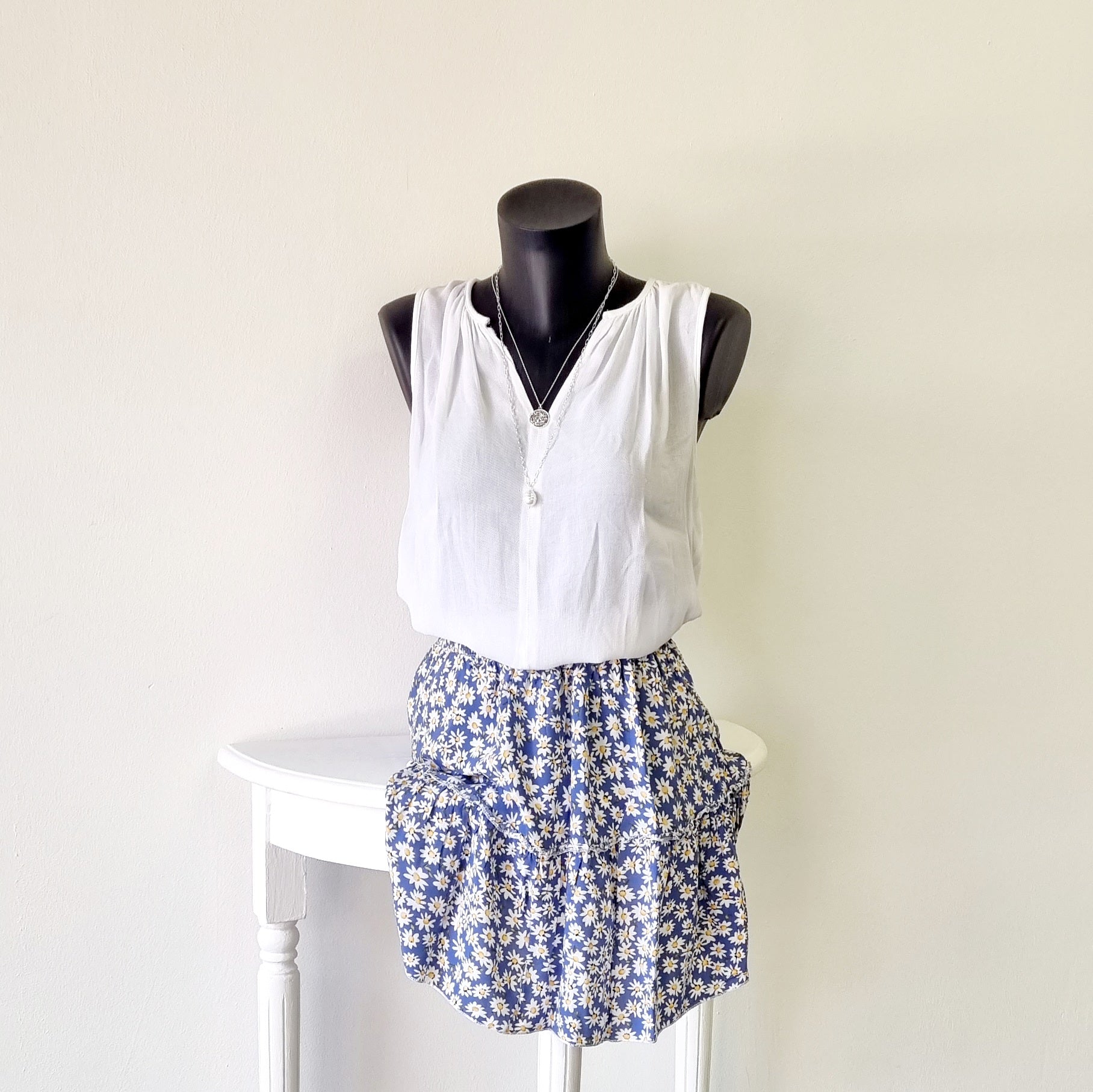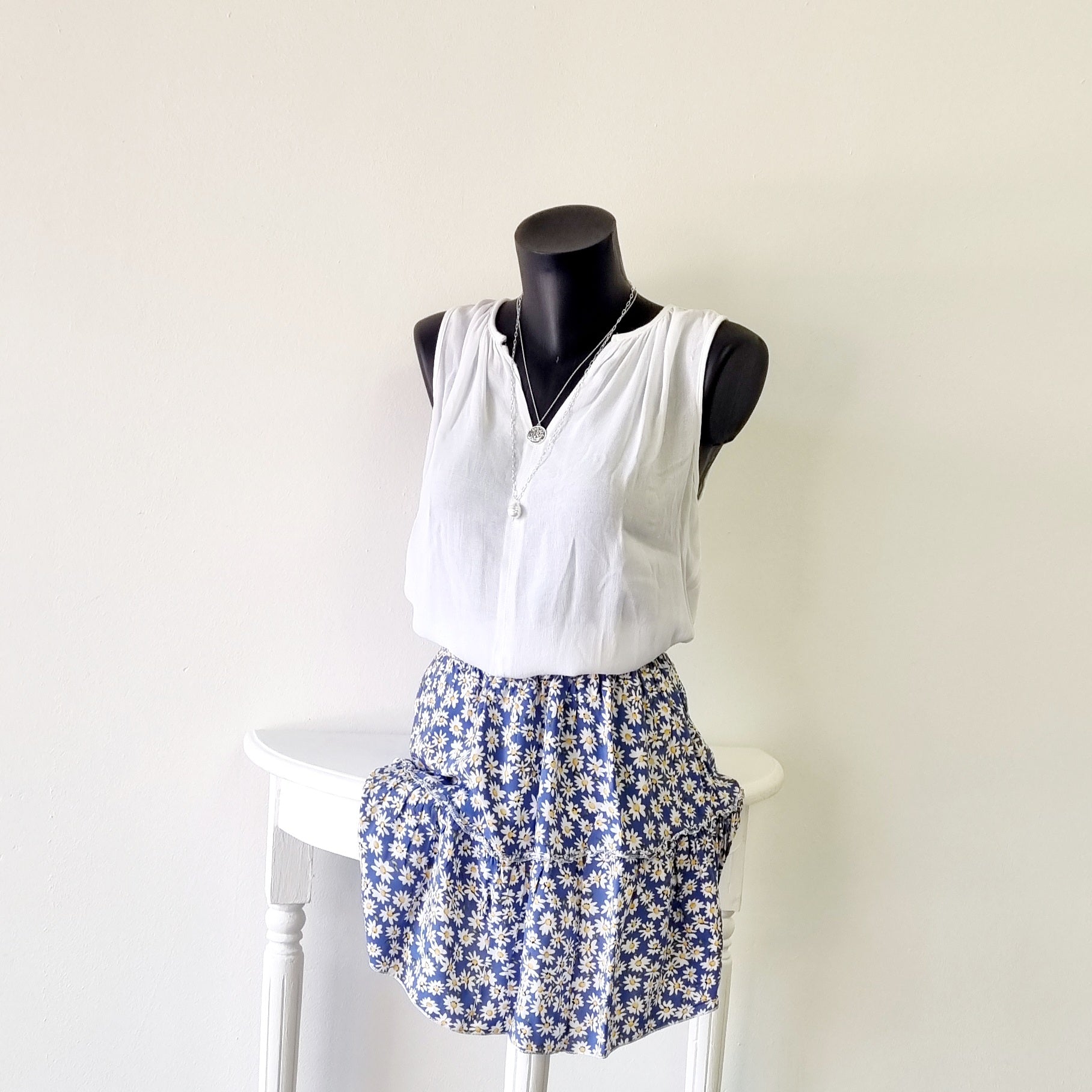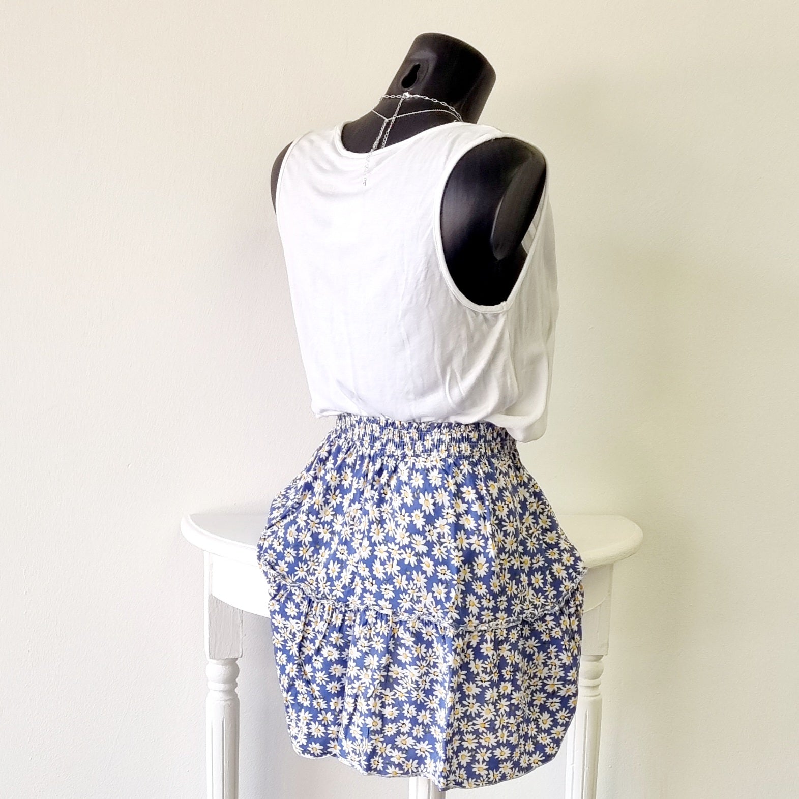 A fun and light blue & white floral mini summer skirt to mess about in.