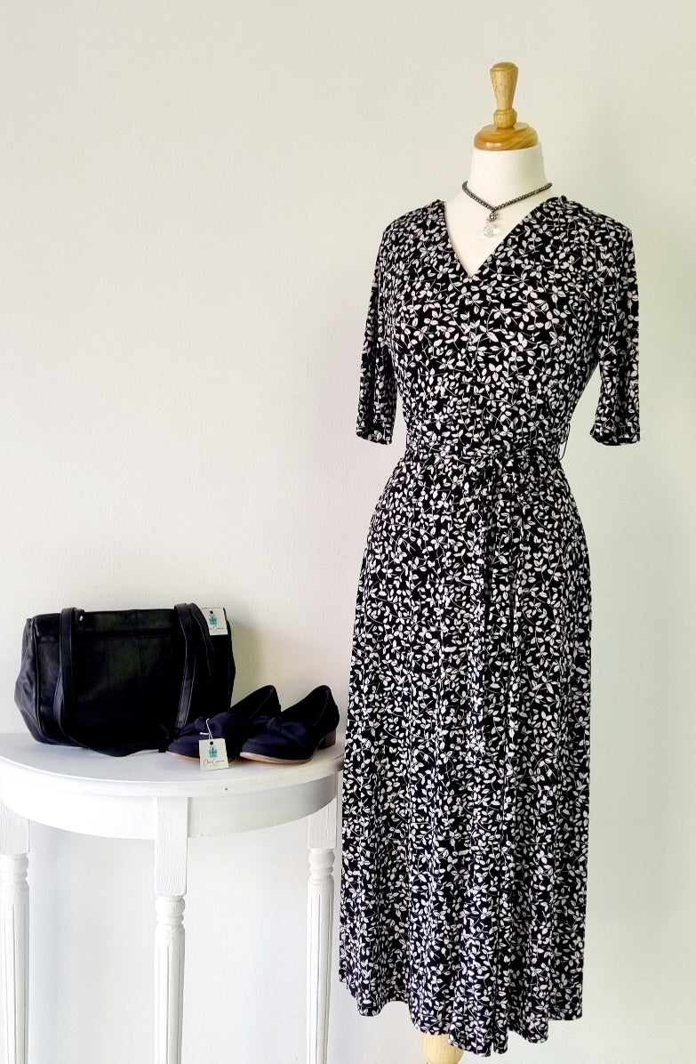 Black & white 3/4 Sleeve summer maxi dress with belt. Purchased in America, an new