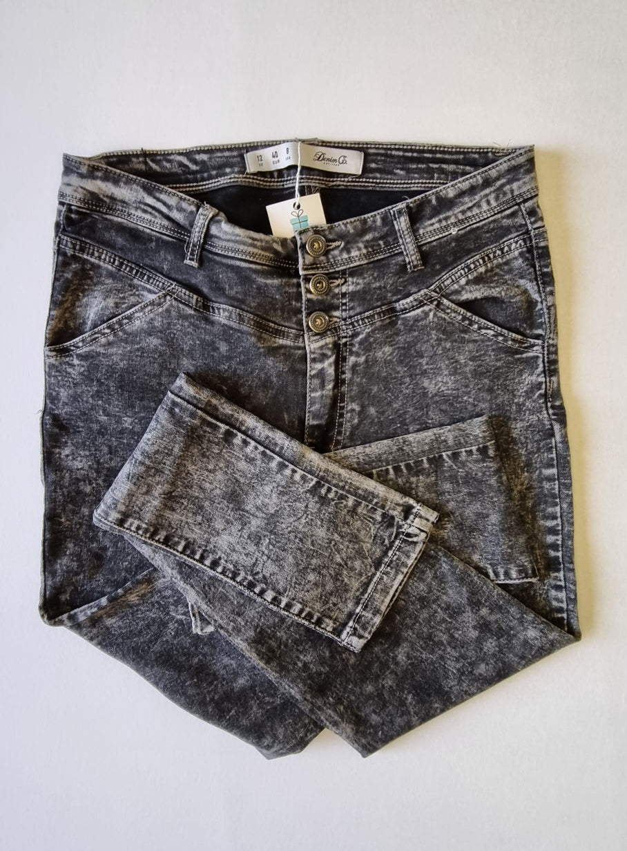 Denim & Co - Black mottled high-lo waisted stretch skinny jeans