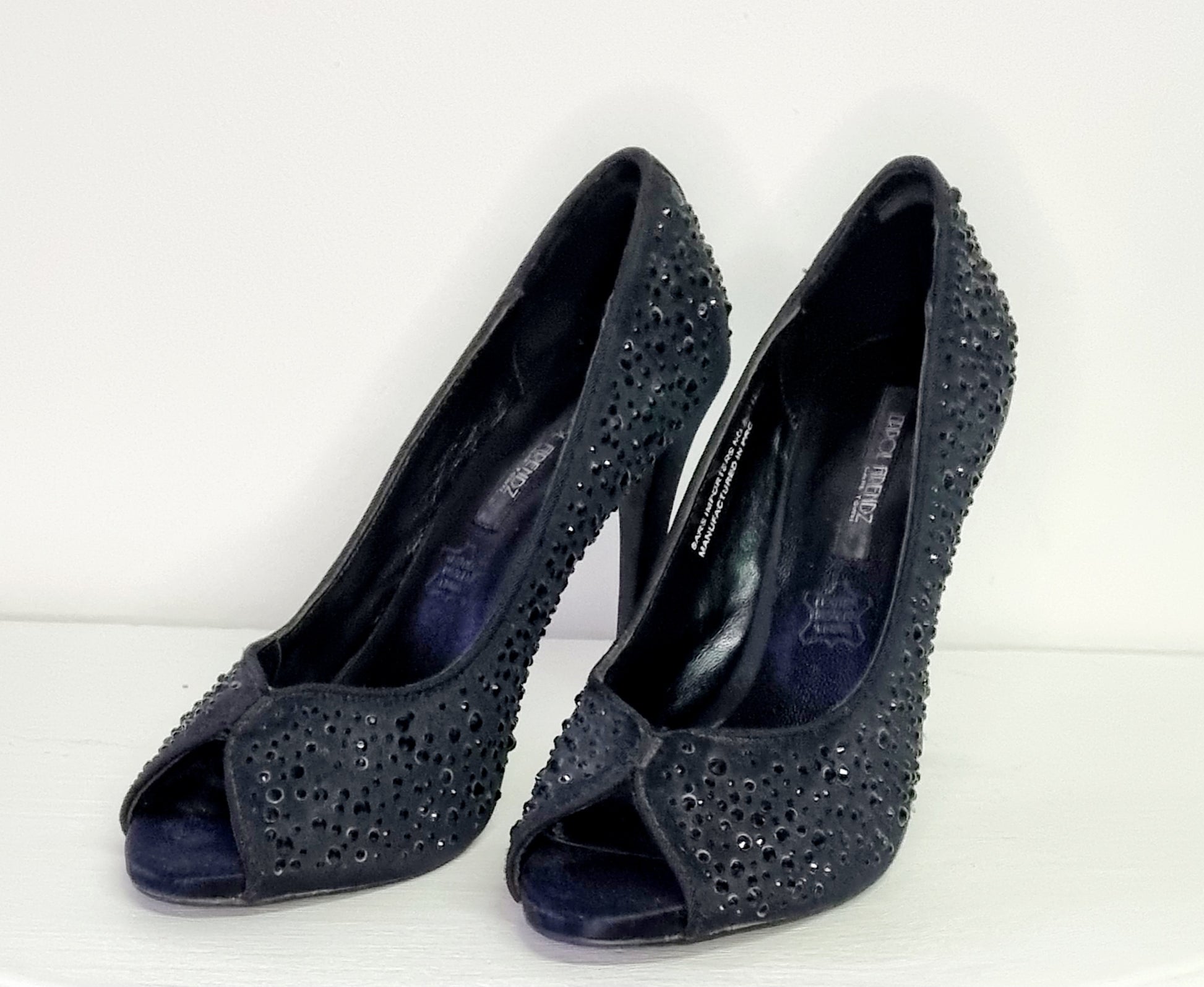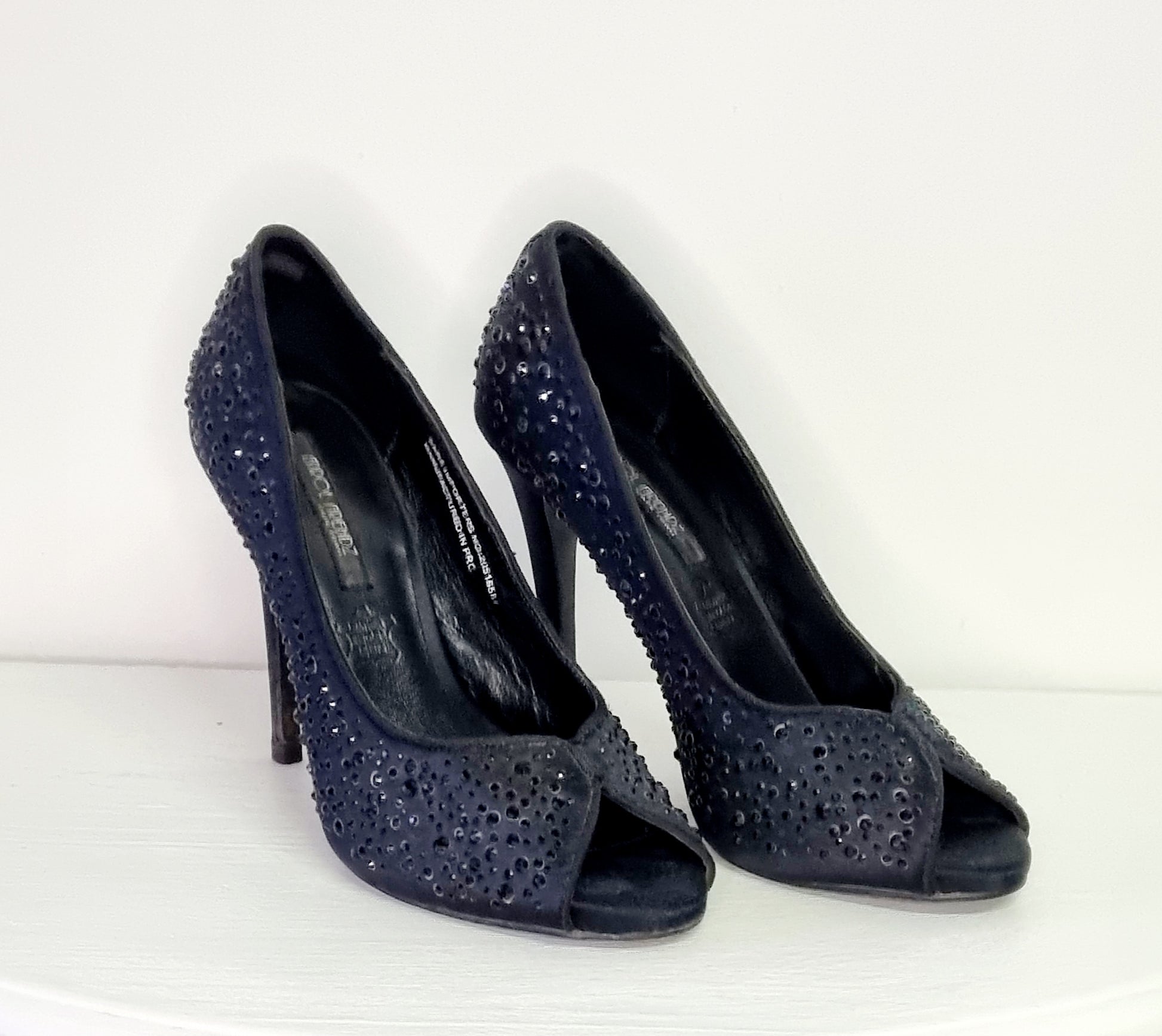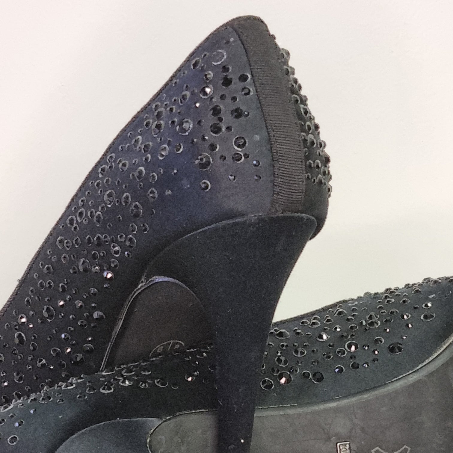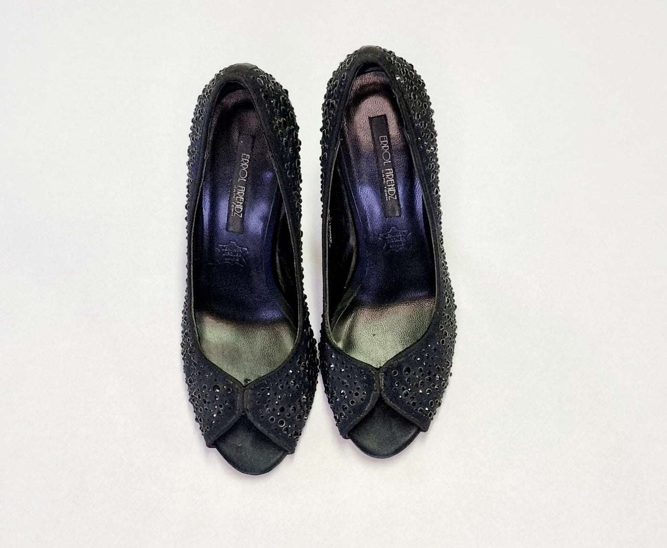 Add this timeless, yet classic and sassy black beaded open toe stiletto heels to your closet.