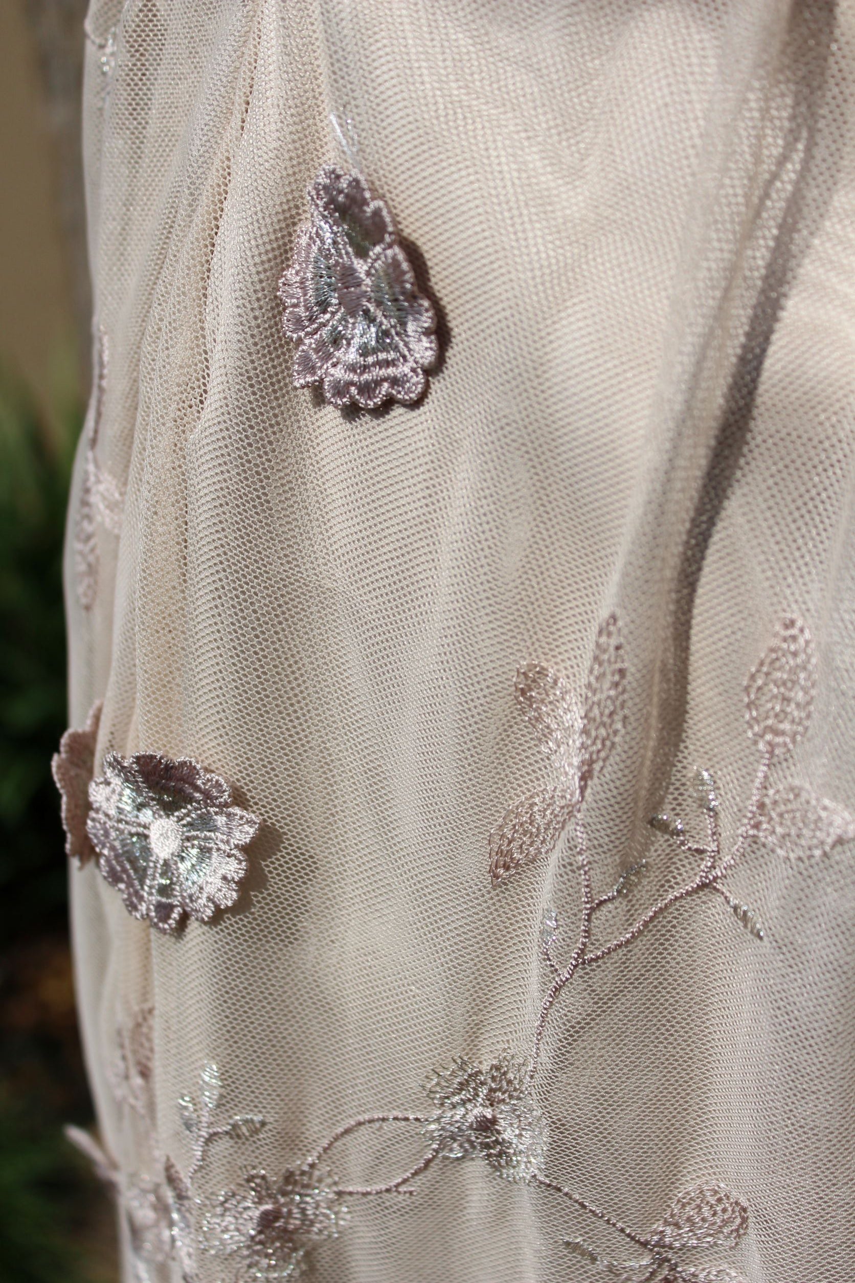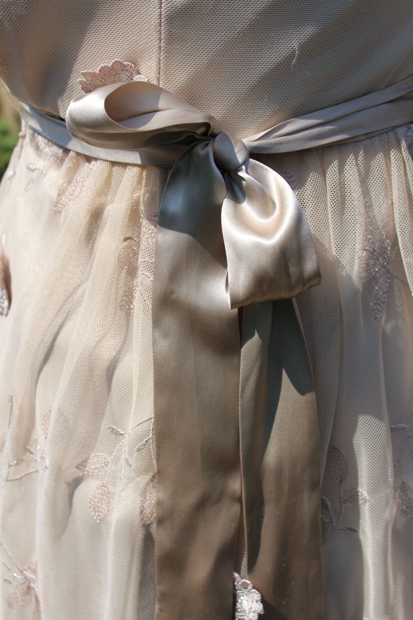 Beige strapless lace and sequin detailed netted short cocktail dress