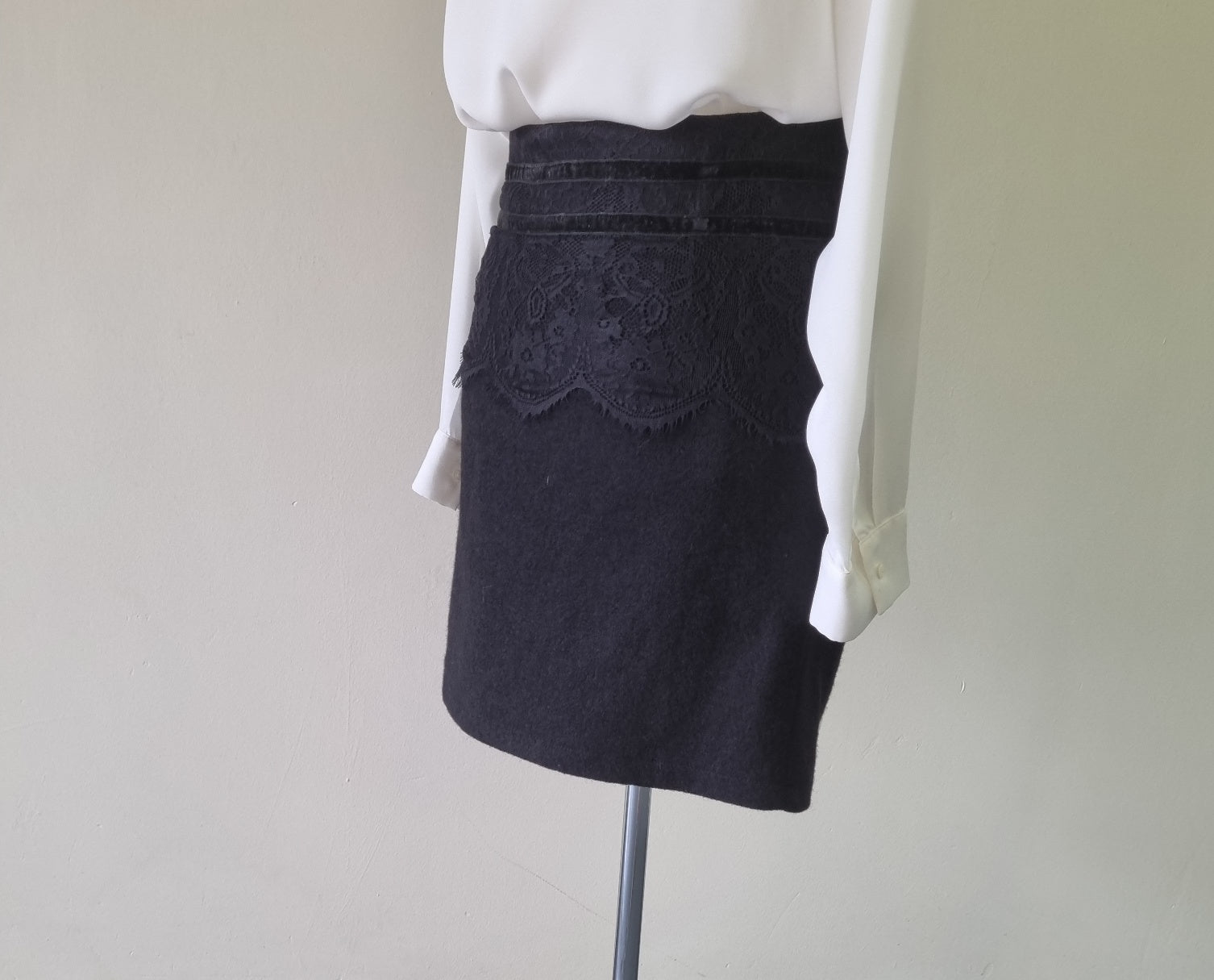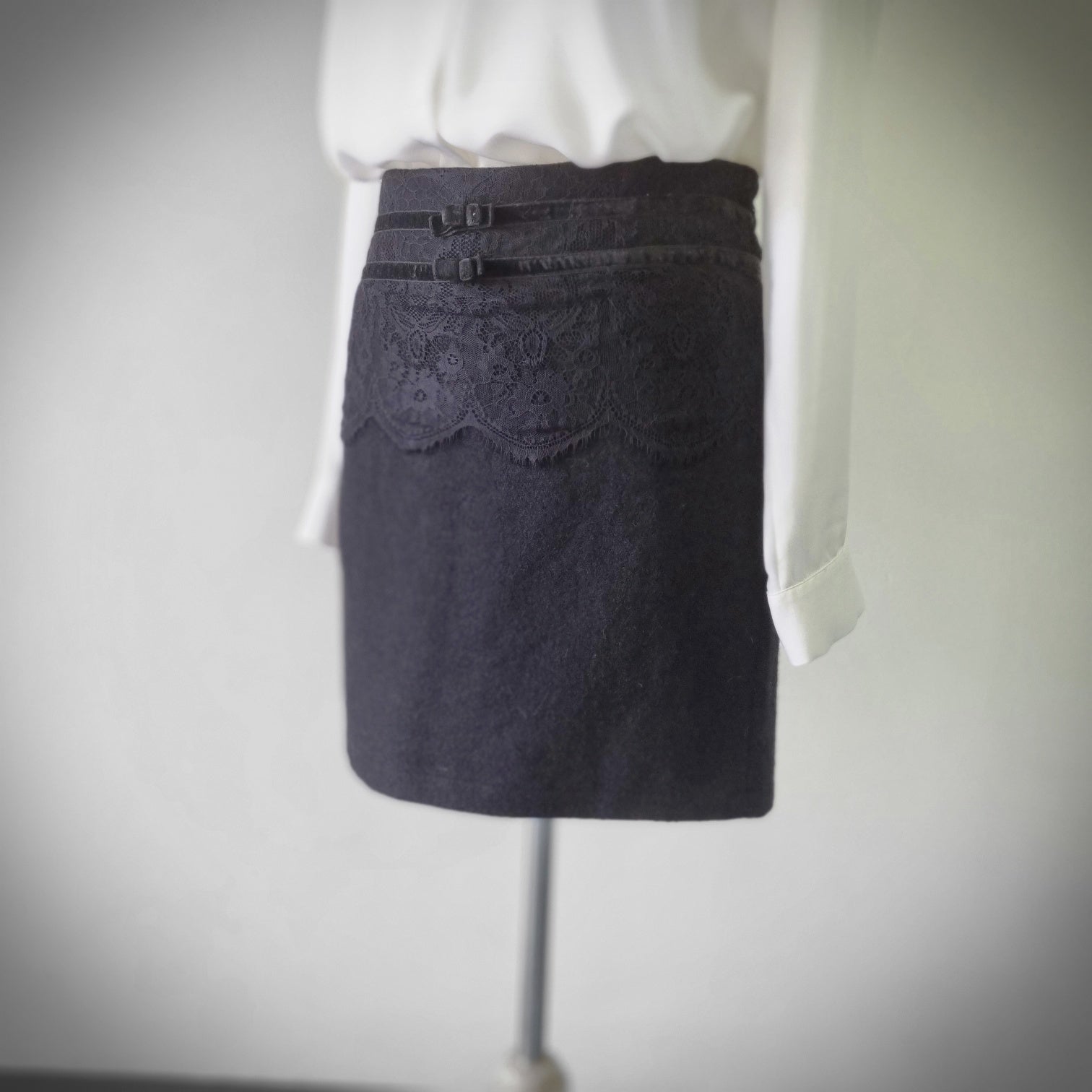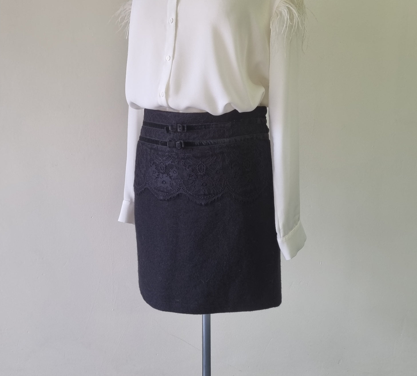 Jo Borkett - Black lined mini skirt with velvet bow trimmings