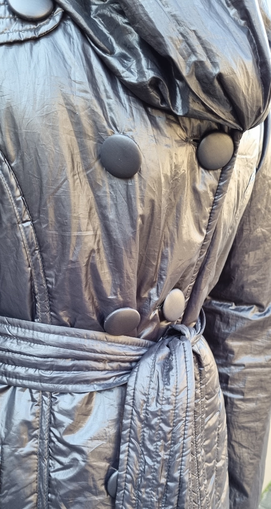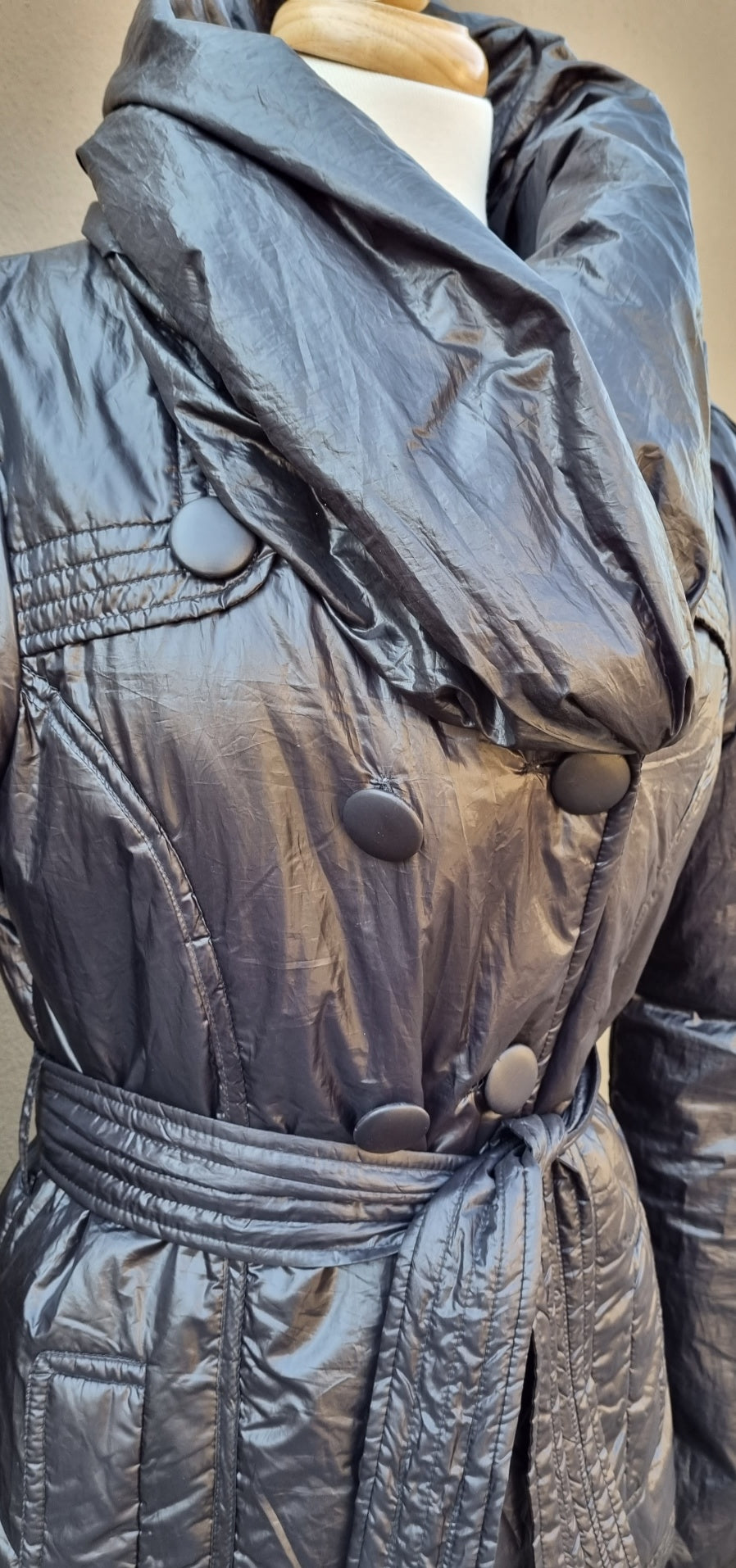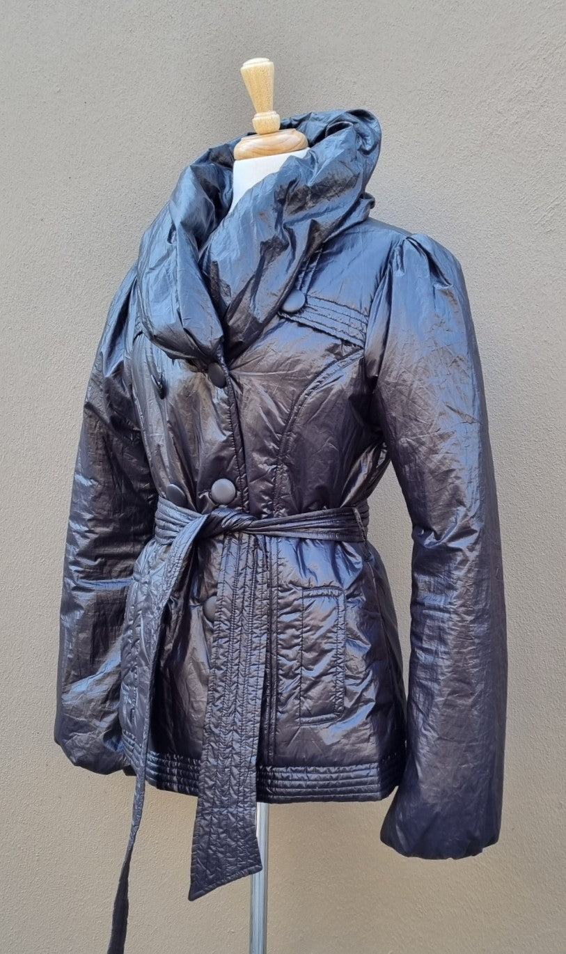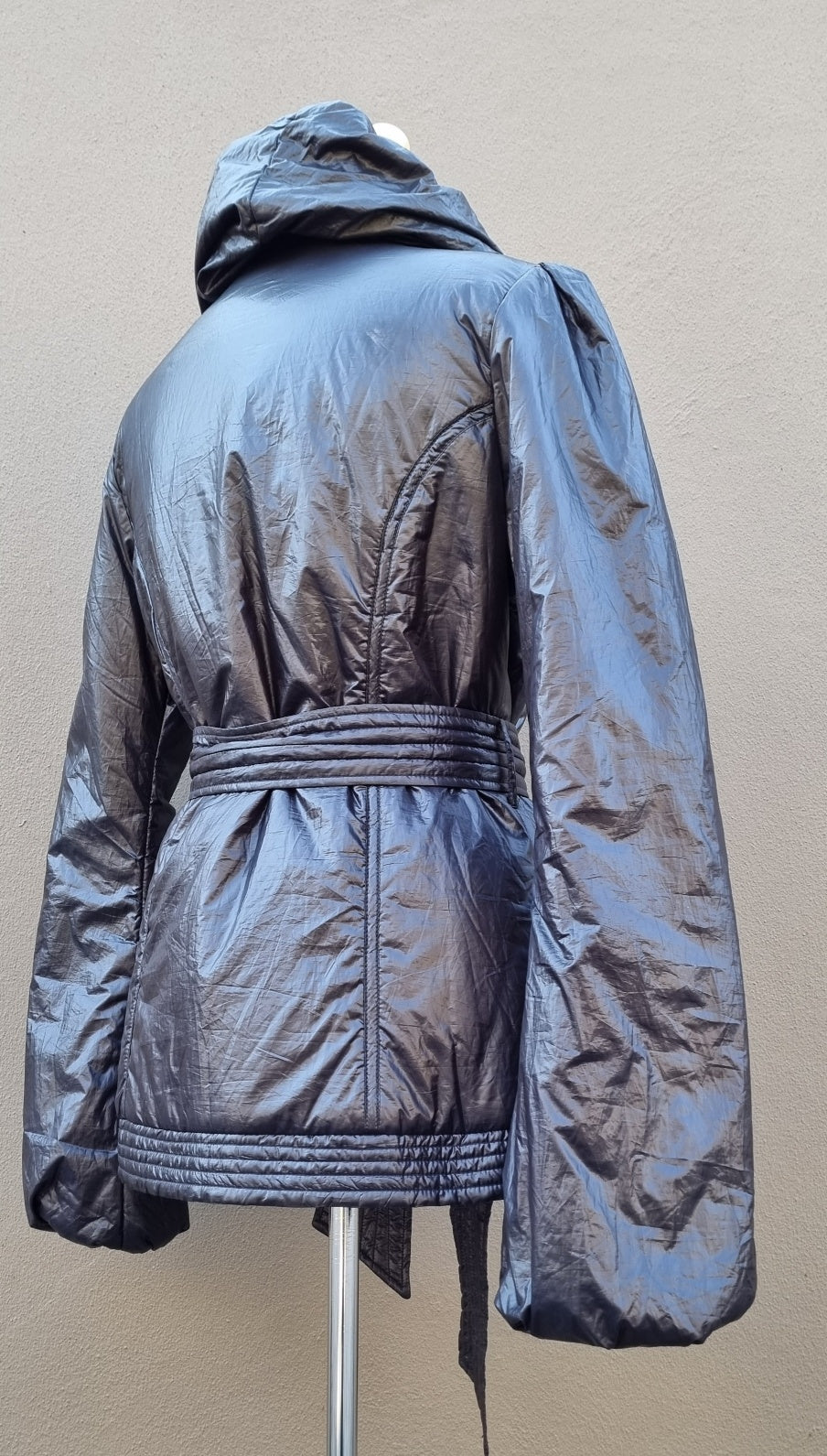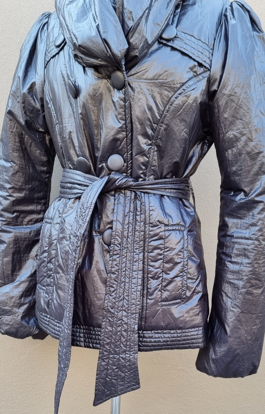 A fun and funky black designer windbreaker, with side pockets, belt, puffer sleeves and collar. Make it your own unique style!