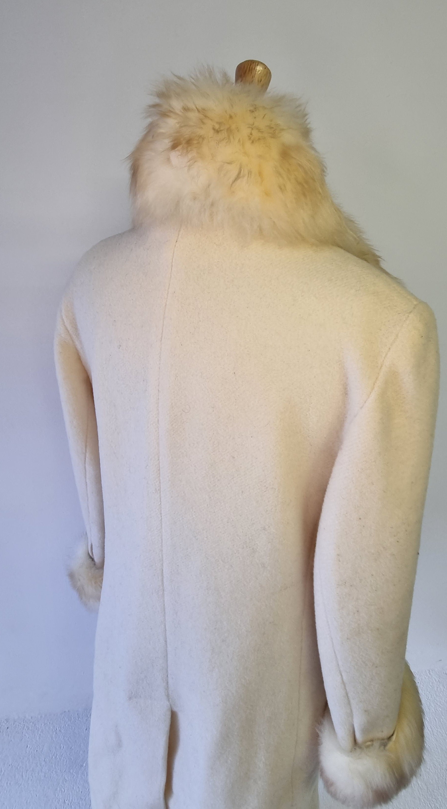 Pure wool cream winter coat with faux fur cuffs and seperate collar wrap with slit settings