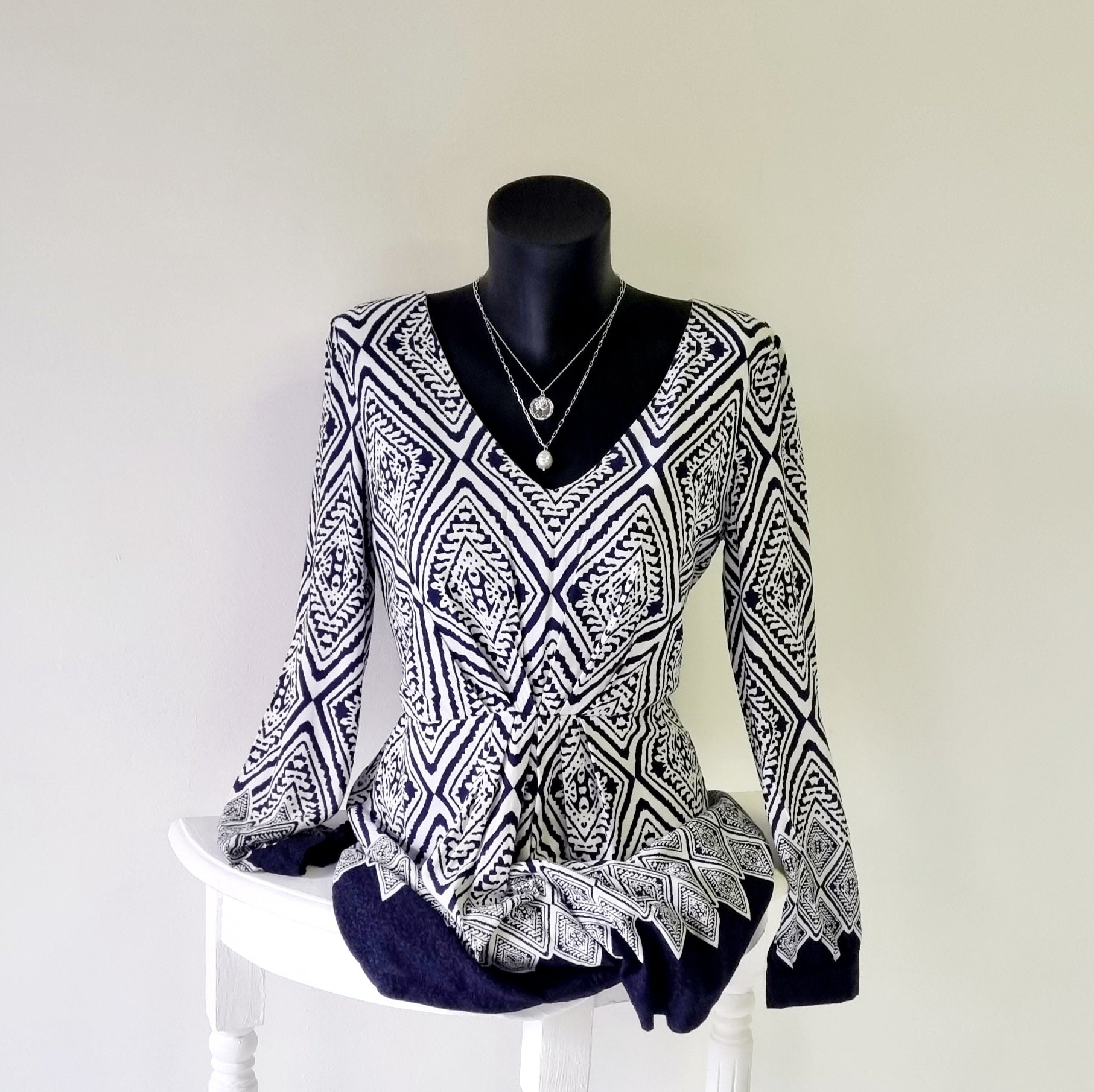 No Tag - Blue & White Long Sleeve Short Romper