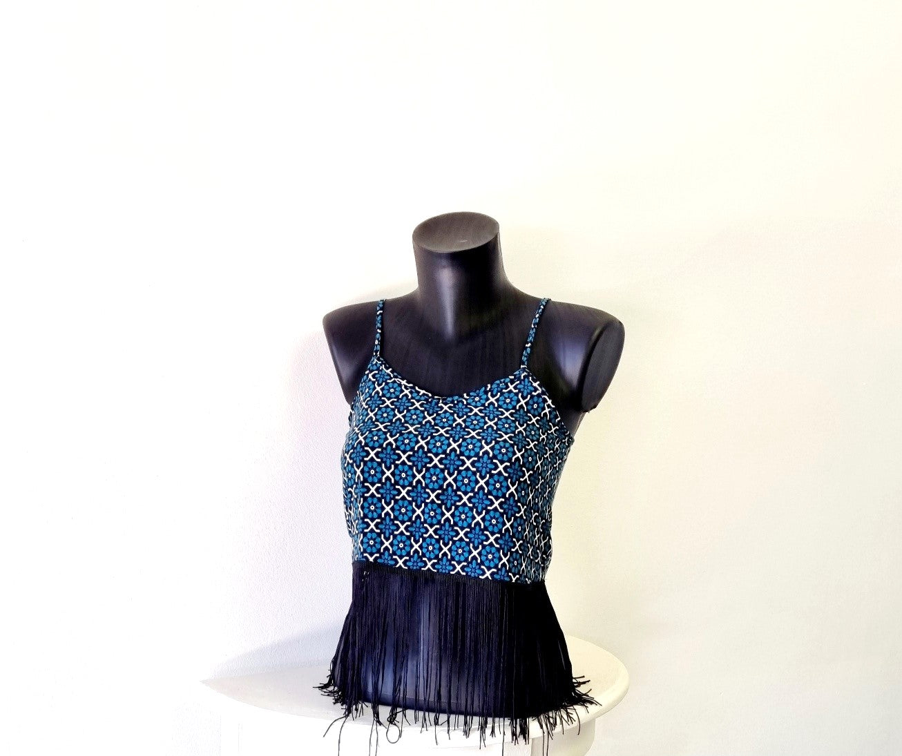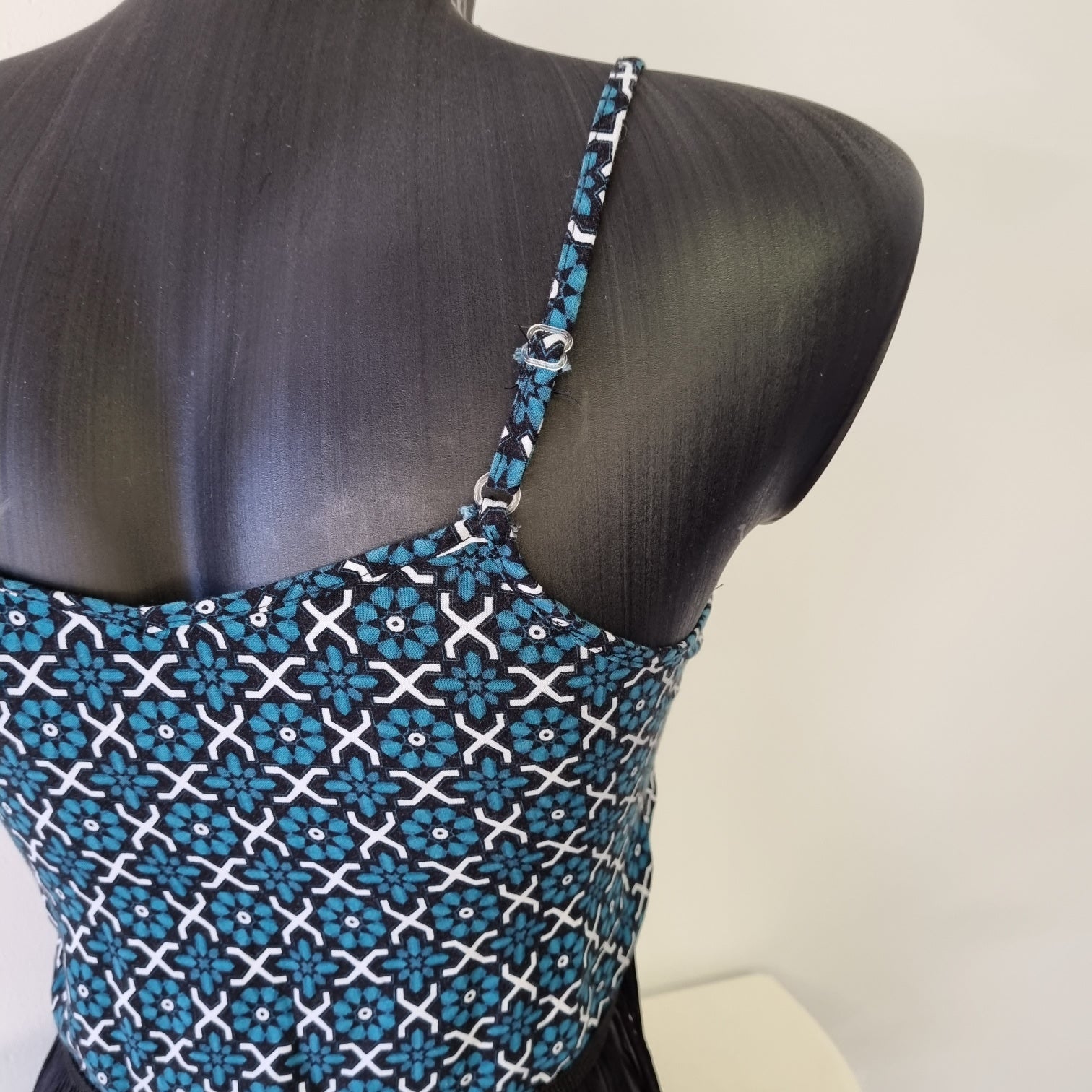 This striking green & white strappy tassel top is the perfect item to elevate everyday dressing. Combine with a pair of jeans, a skirt or a pair of shorts for that perfect summer look.
