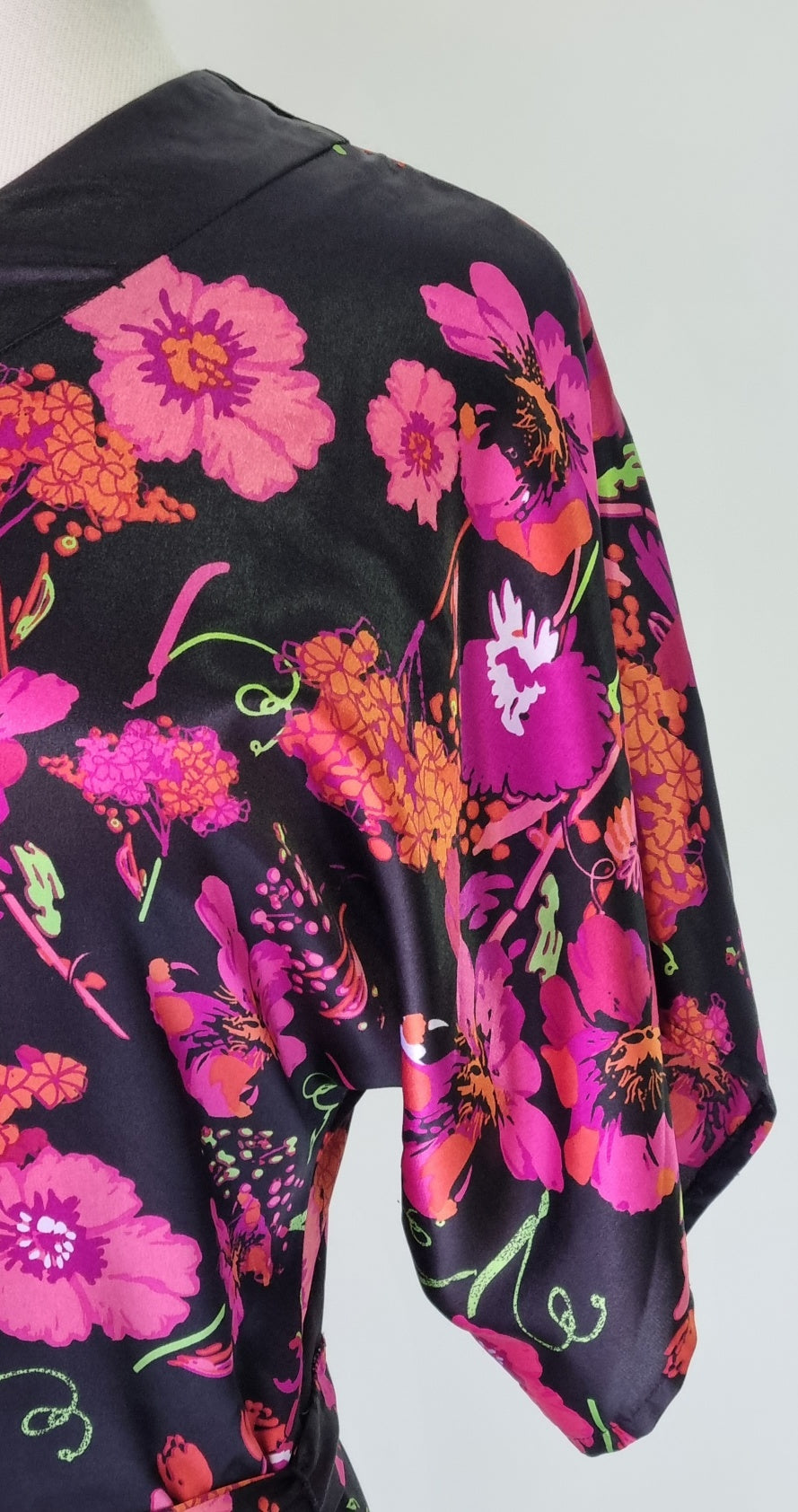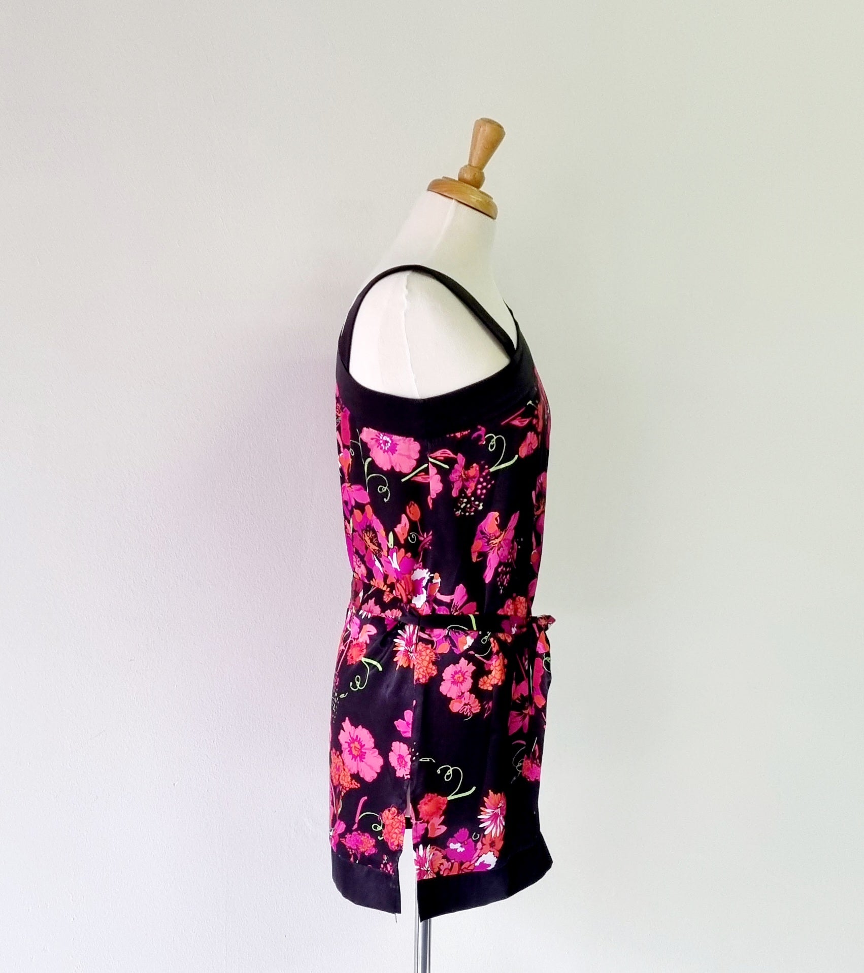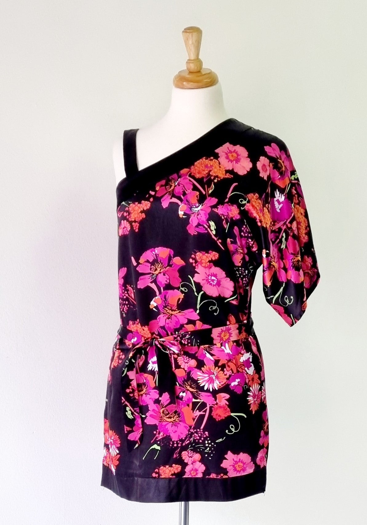 A unique black & pink floral one shoulder blouse with belt